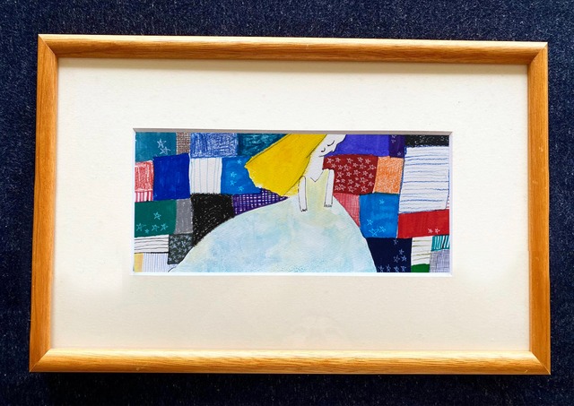 沖縄タイムス副読紙「ほ〜むぷらざ」連載の 「あこなわ歩紀」のために書き下ろした原画。 ※絵本「あこなわ歩紀」付録。 額縁サイズ 太子 製作年 2015年 / アクリルガッシュ、水彩色鉛筆 額縁付