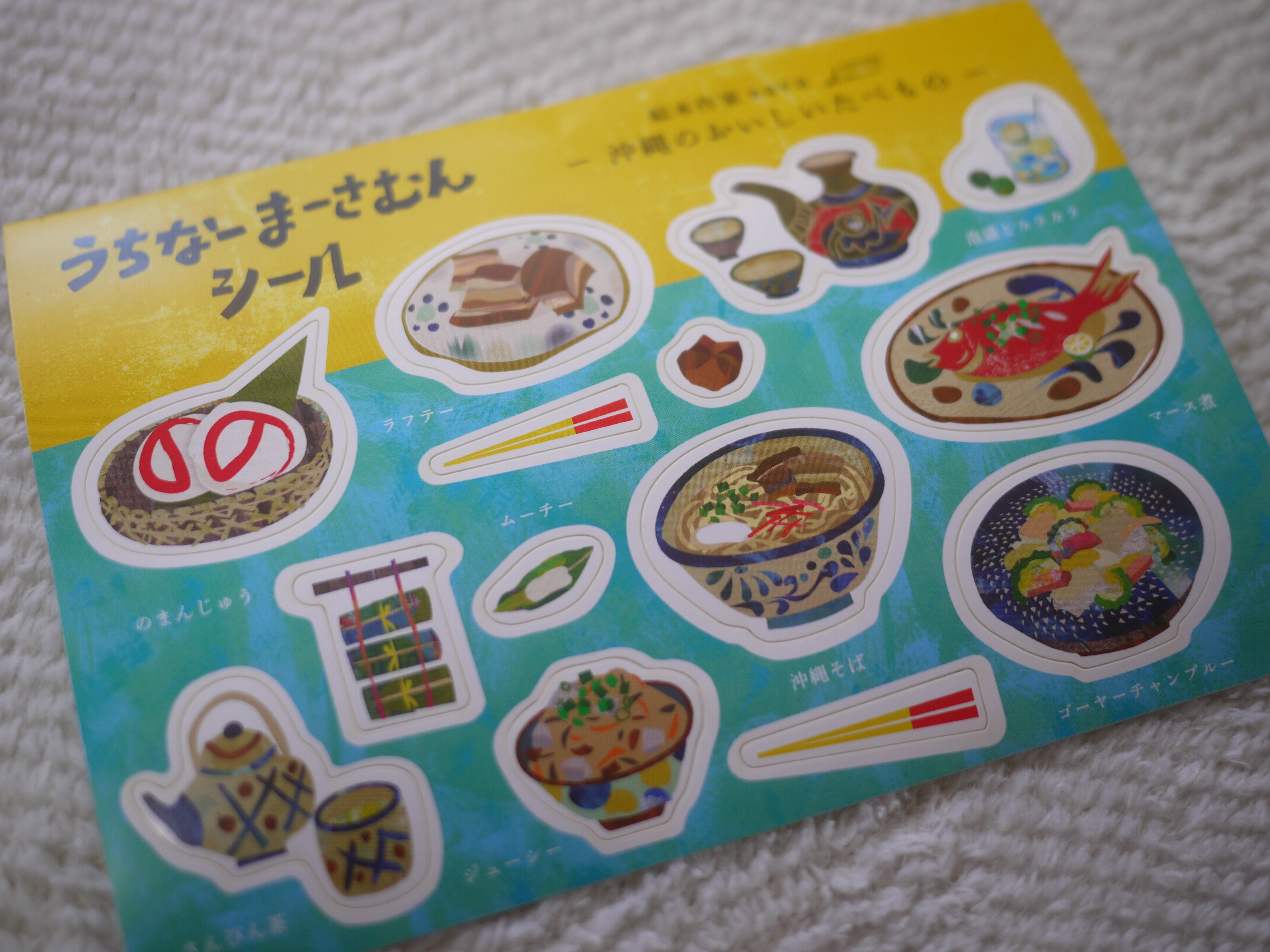 うちなーまーさむん(沖縄のおいしいたべもの)がたくさん並んだシールシートです。