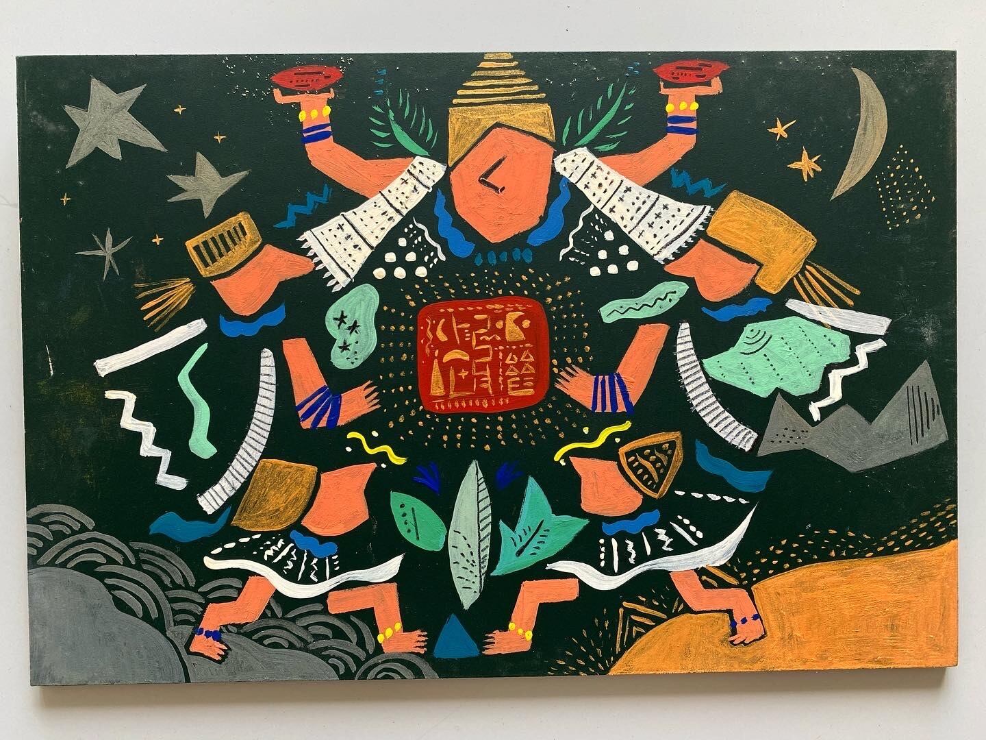 神様からの贈り物【木製ボードにアクリルガッシュ】