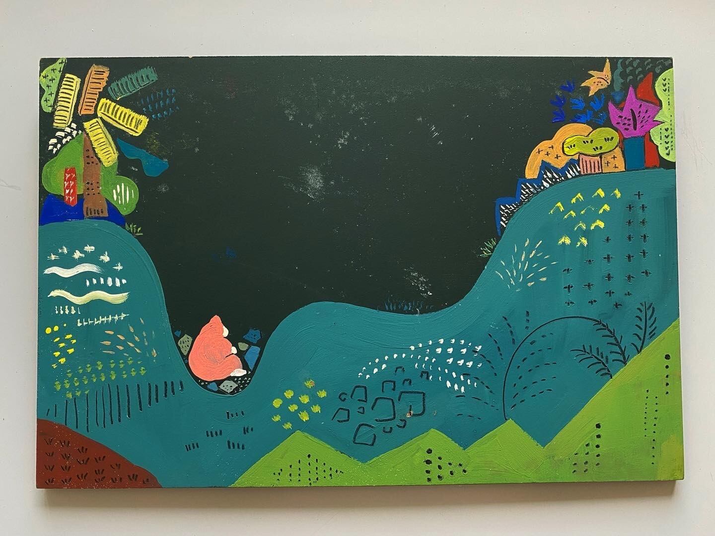 小石が詰まったそんな夜【木製ボードにアクリルガッシュ】